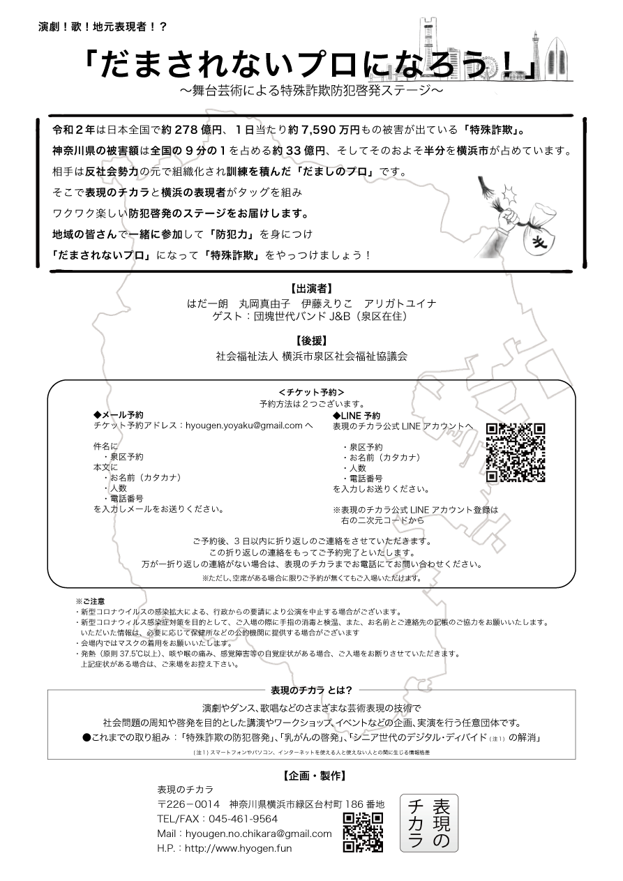 お返事が無い場合、お手数ですが下部のメールフォームか直接お電話で表現のチカラまでご連絡下さい。